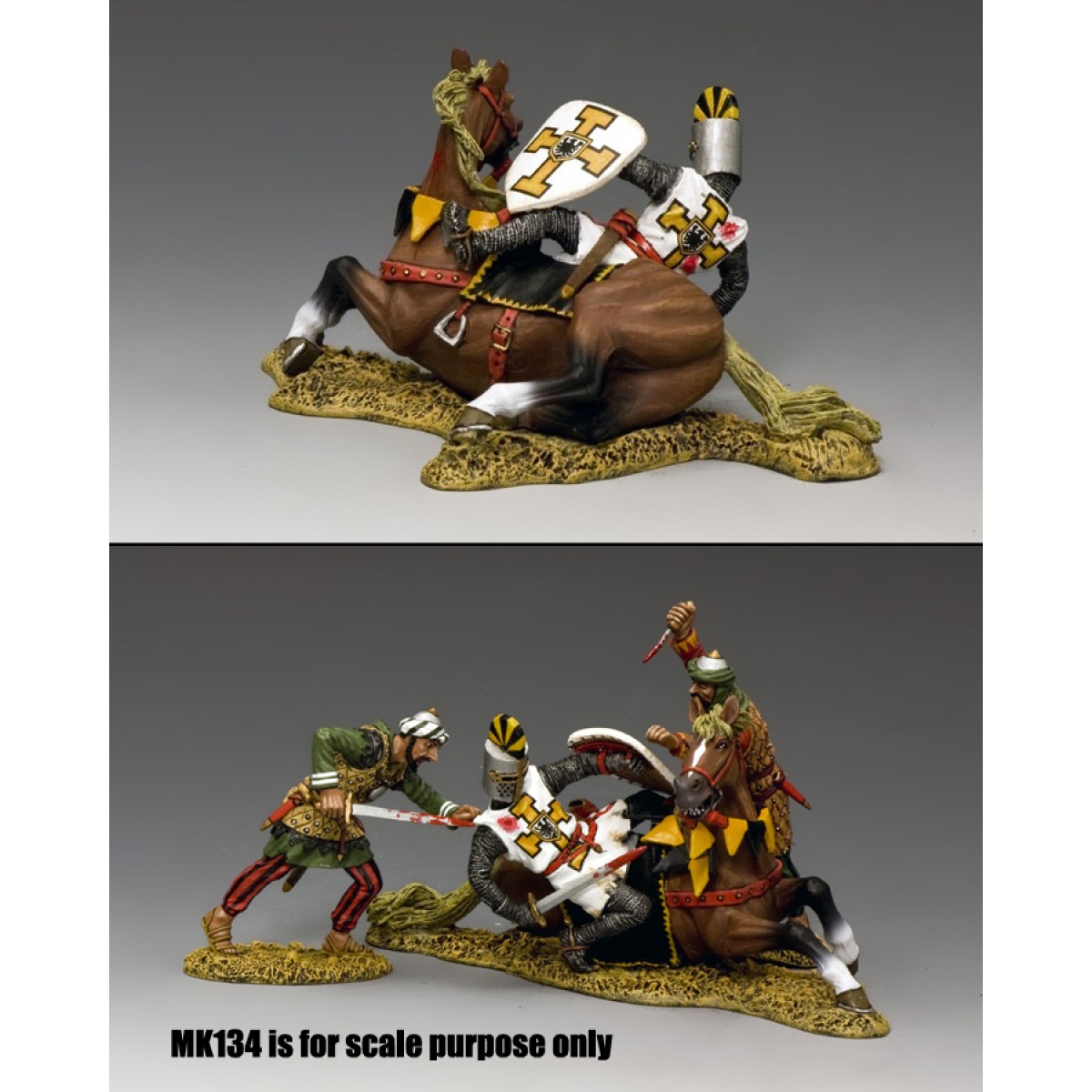 This Germanic horseman falls to the ground as his mount is fatally wounded. When surrounded and attacked by the MK134 set his outlook is looking desperate...no matter how bravely he fights!
